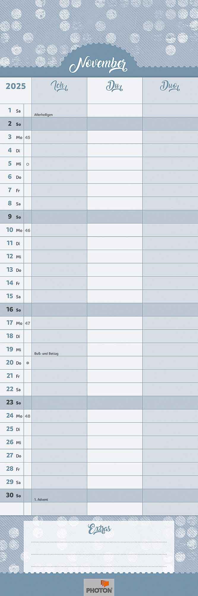 Diese Planer bieten jede Menge Platz für alle wichtigen Termine im optimierten Streifenformat!