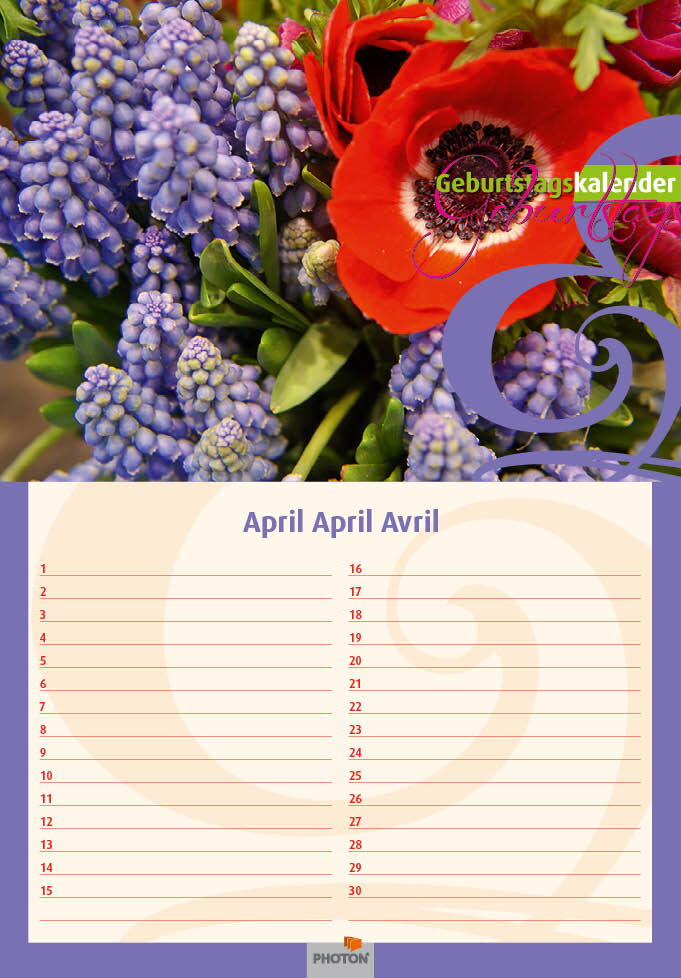 Geburtstagskalender mit bezaubernden Blumenbildern von Christine Keim.