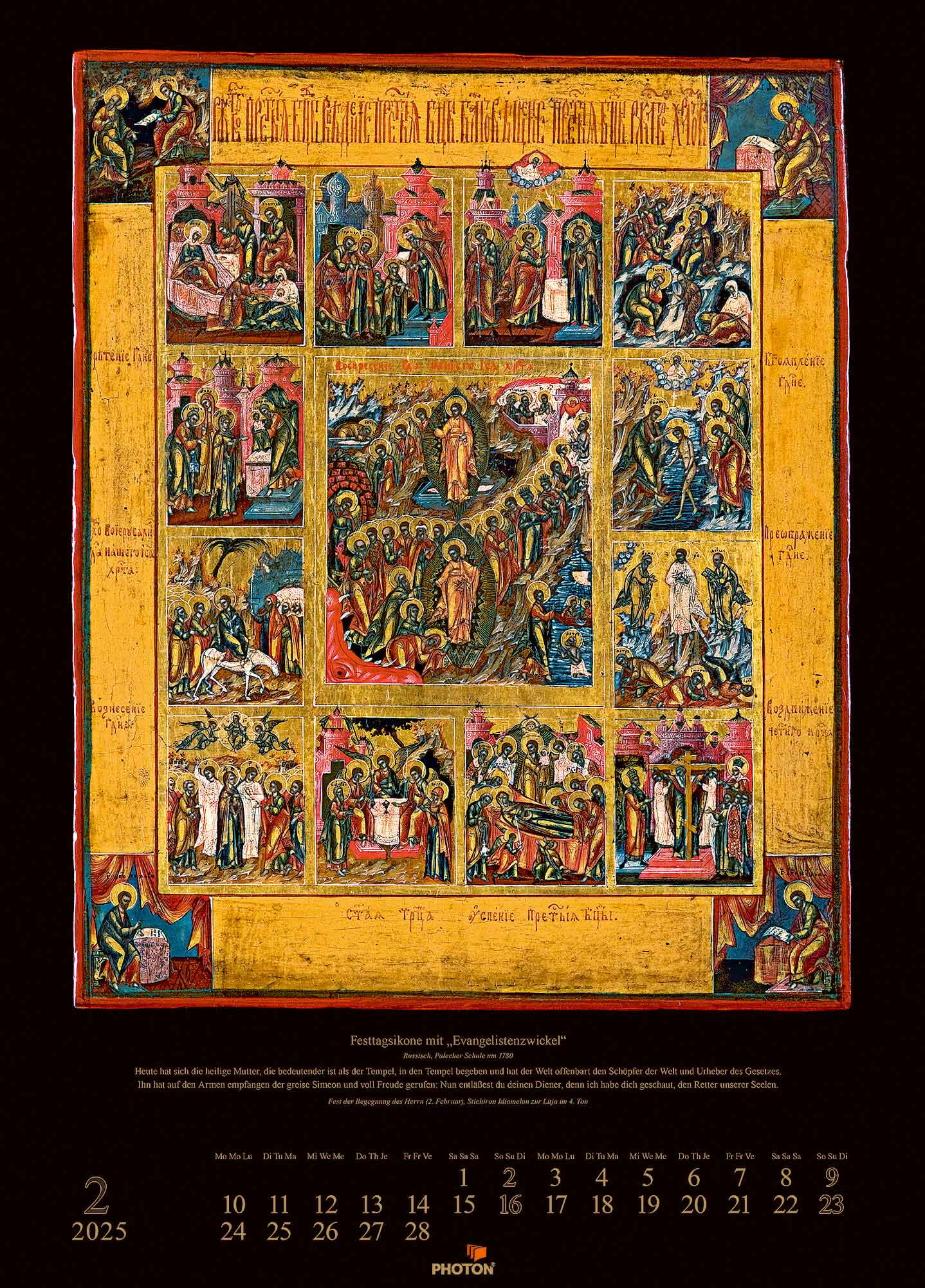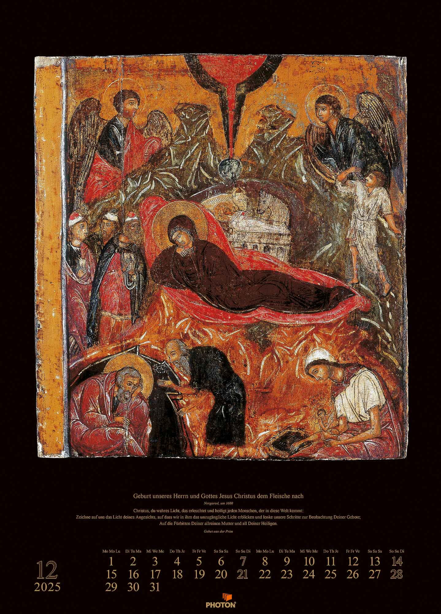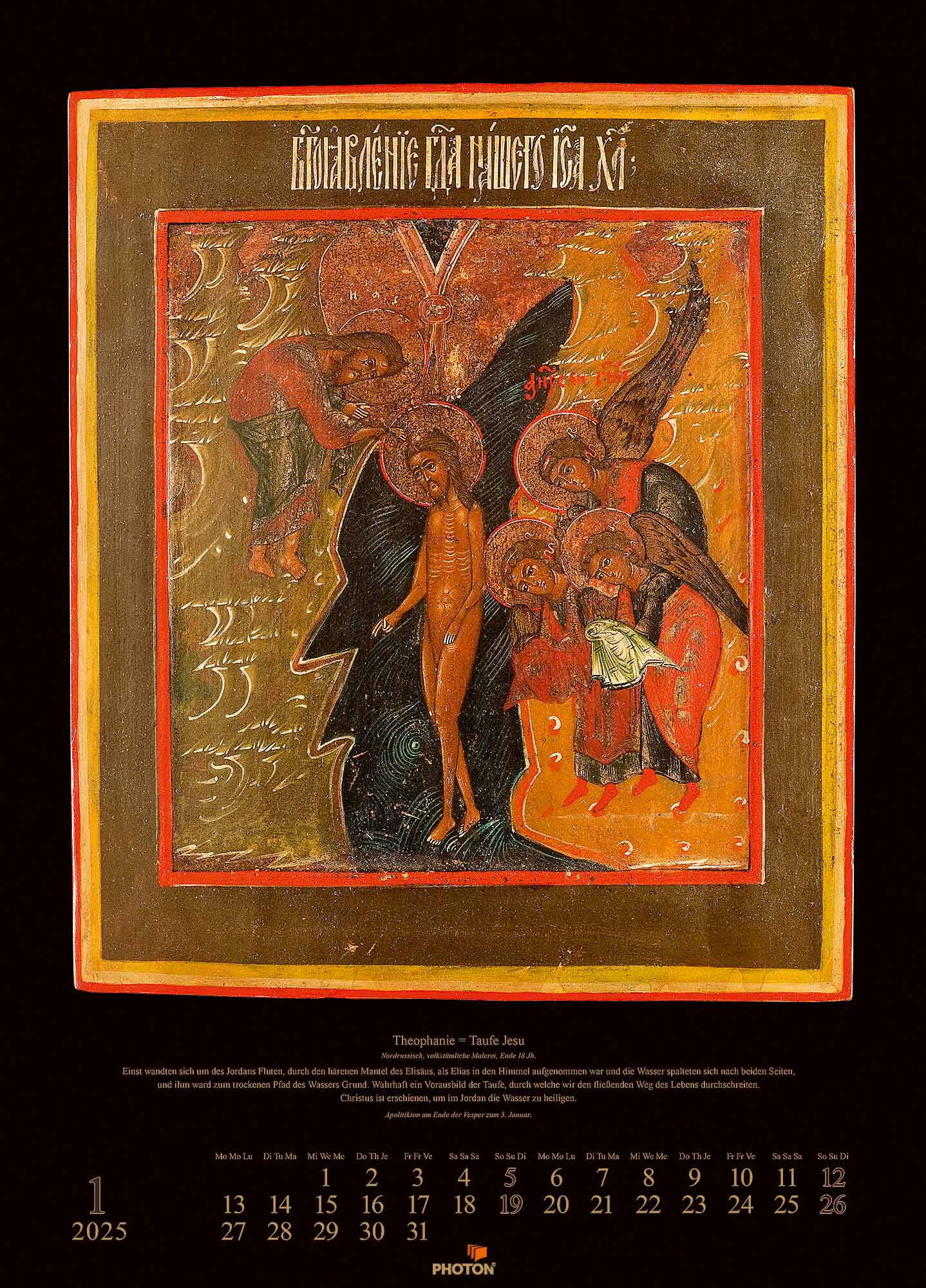 Außerordentlich schöne Ansichten wertvollster Ikonen, liebevoll zusammengetragen aus privaten Sammlungen, begleiten den Betrachter durch das ganze Jahr.