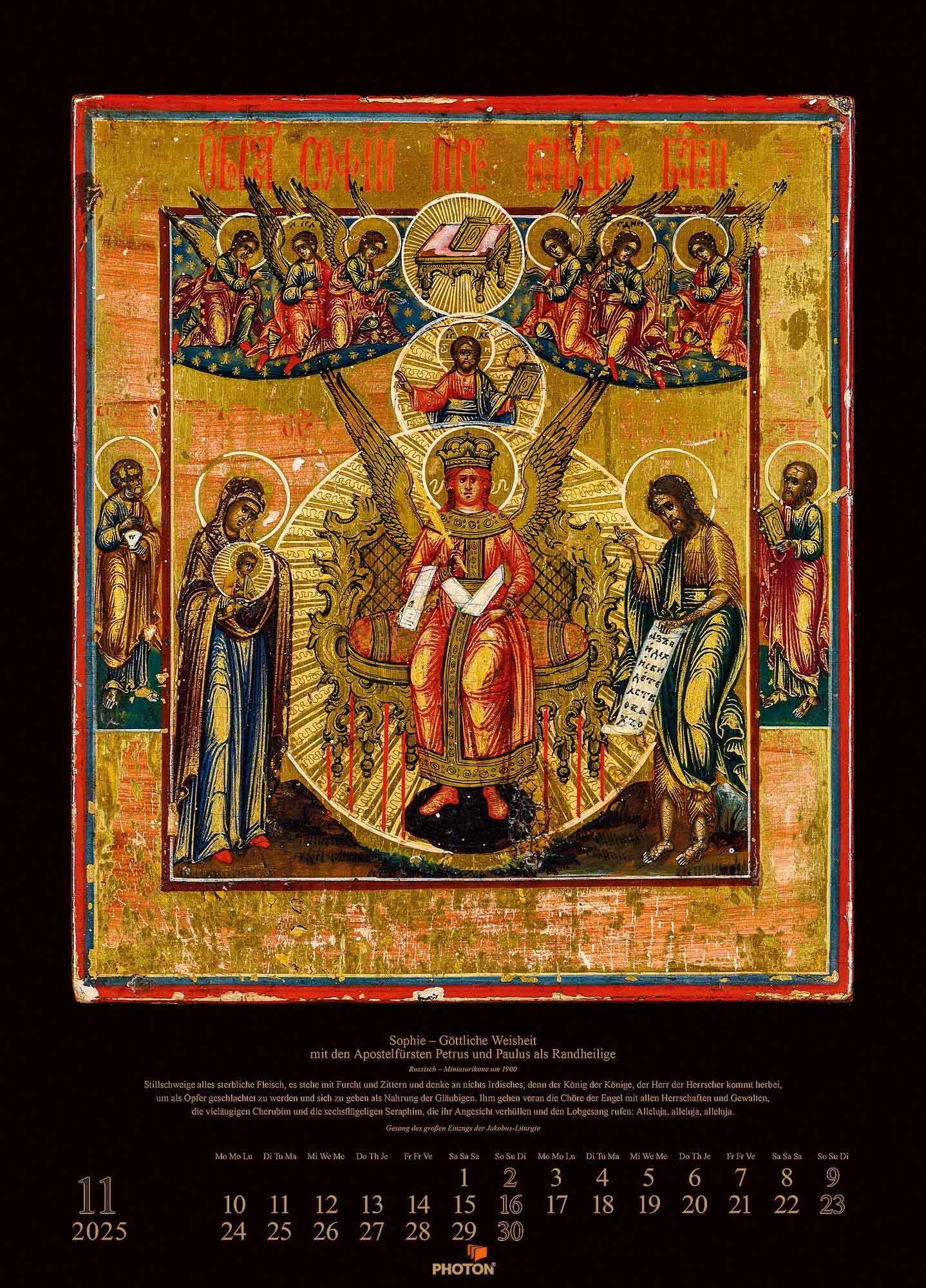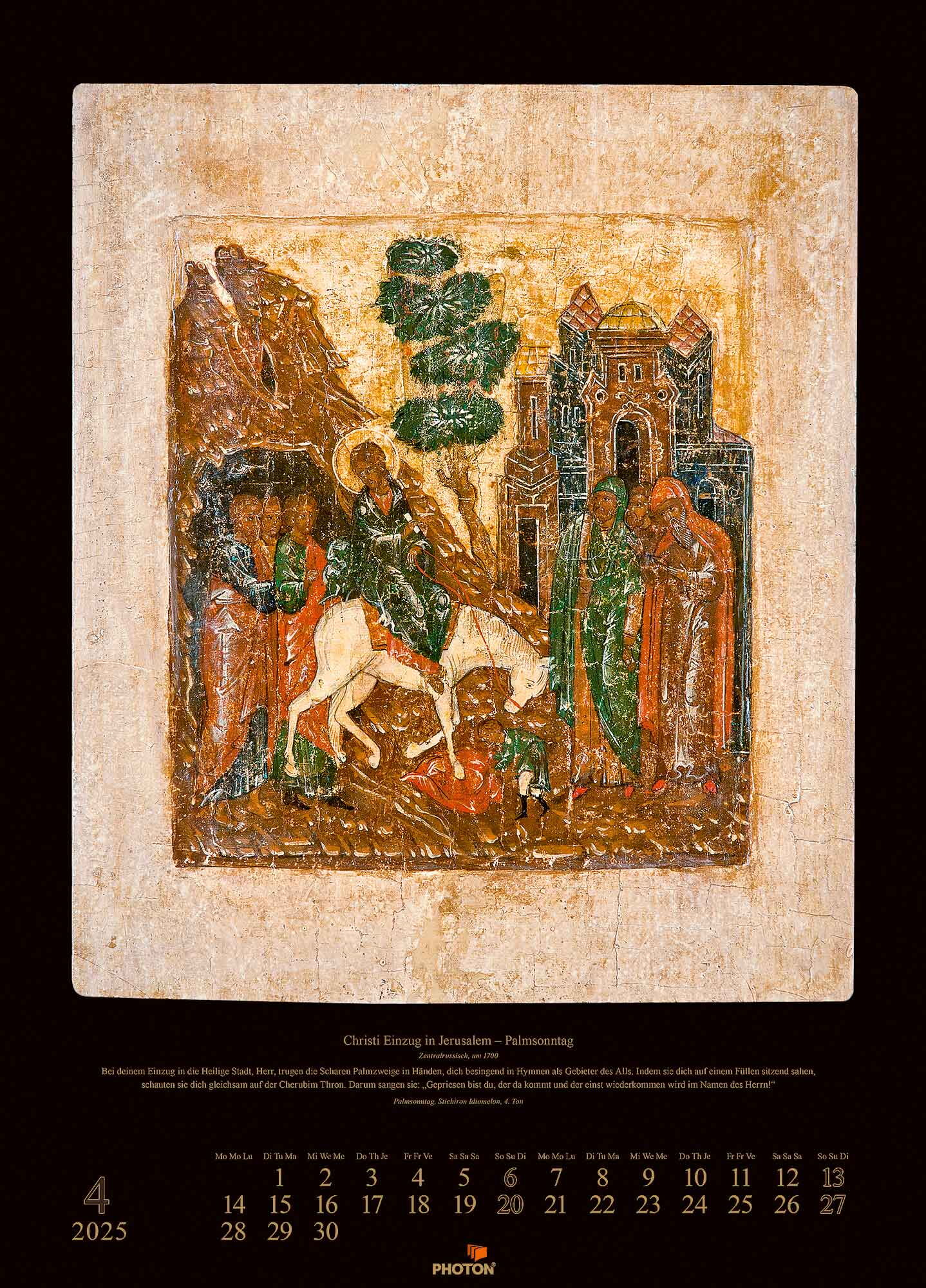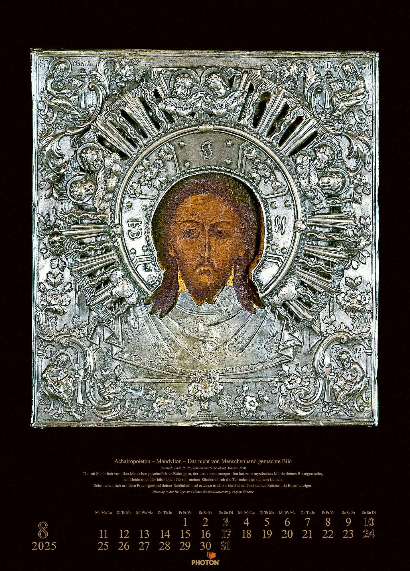 Außerordentlich schöne Ansichten wertvollster Ikonen, liebevoll zusammengetragen aus privaten Sammlungen, begleiten den Betrachter durch das ganze Jahr.