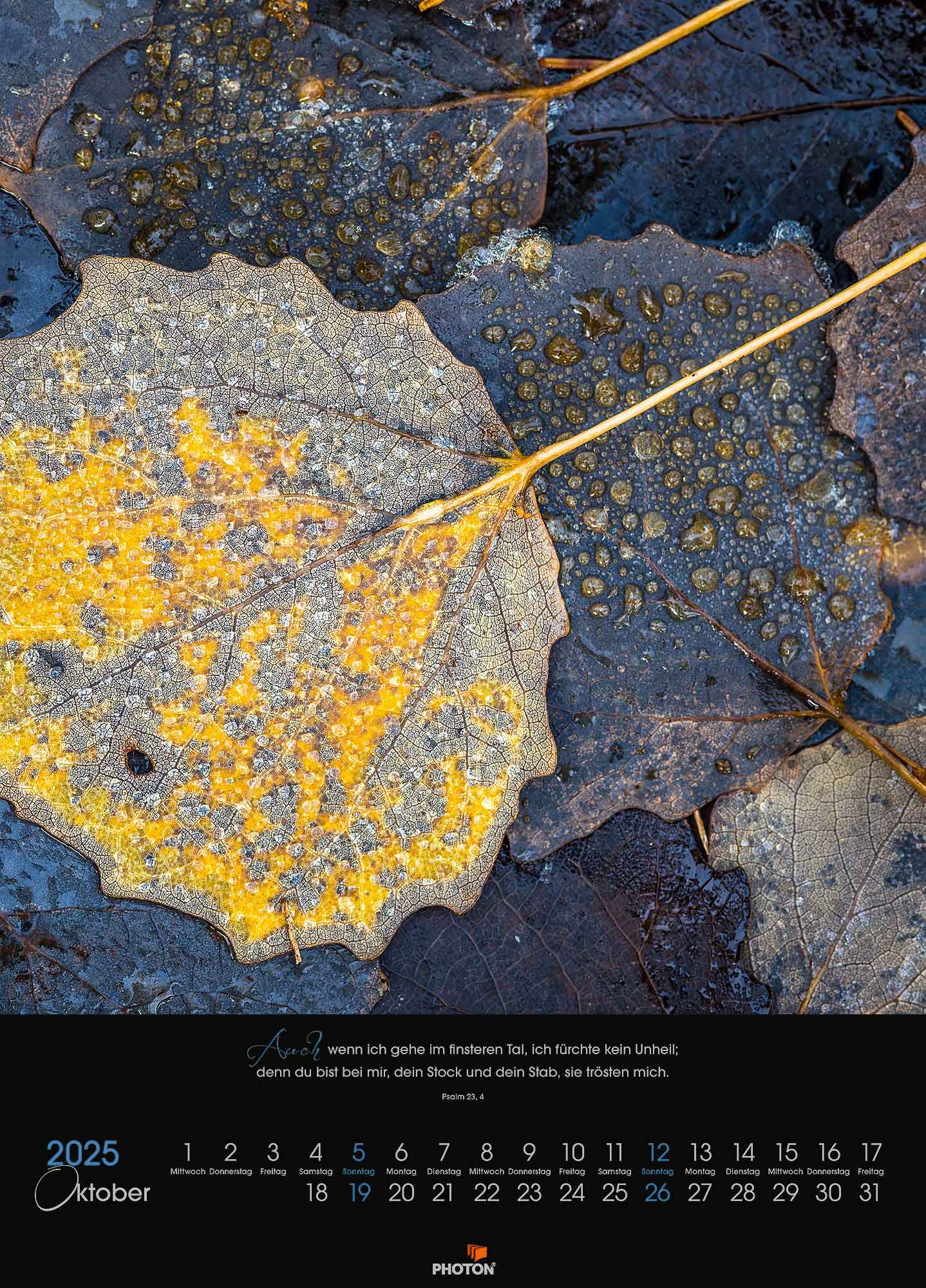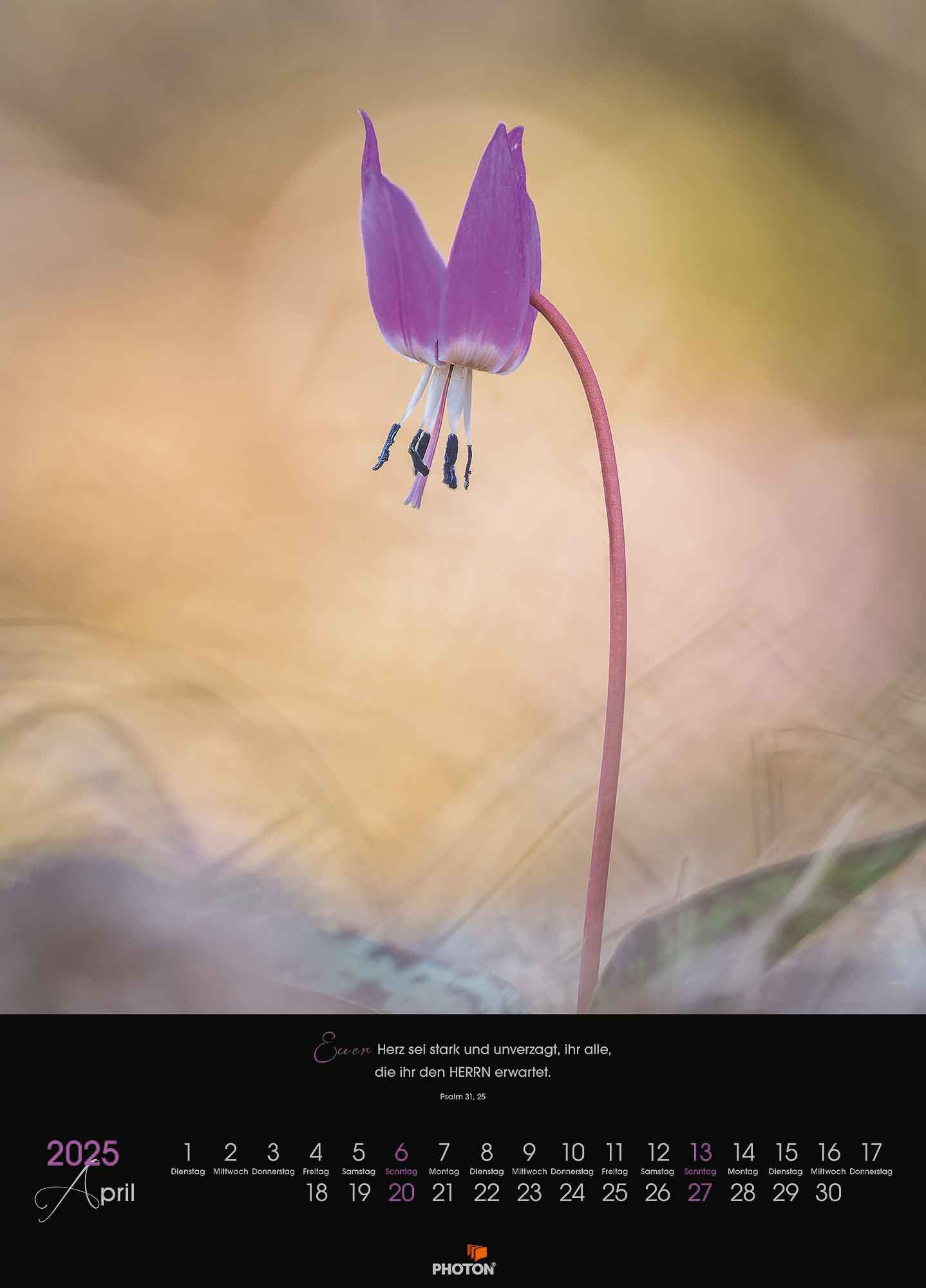 Die Monatsblätter mit Fotografien von Markus Kesenheimer entsprechend dem Festkreis des Kirchenjahres und bieten die entsprechenden Texte, sowie ein Vorwort von Pater Nikolaj Dorner OSB. Höchst anspruchsvoll und geschmackvoll umgesetzt. Ein Kalenderprojekt, das längst zum Sammlerstück avanciert ist. Dieser Kalender ist besonders empfehlenswert!