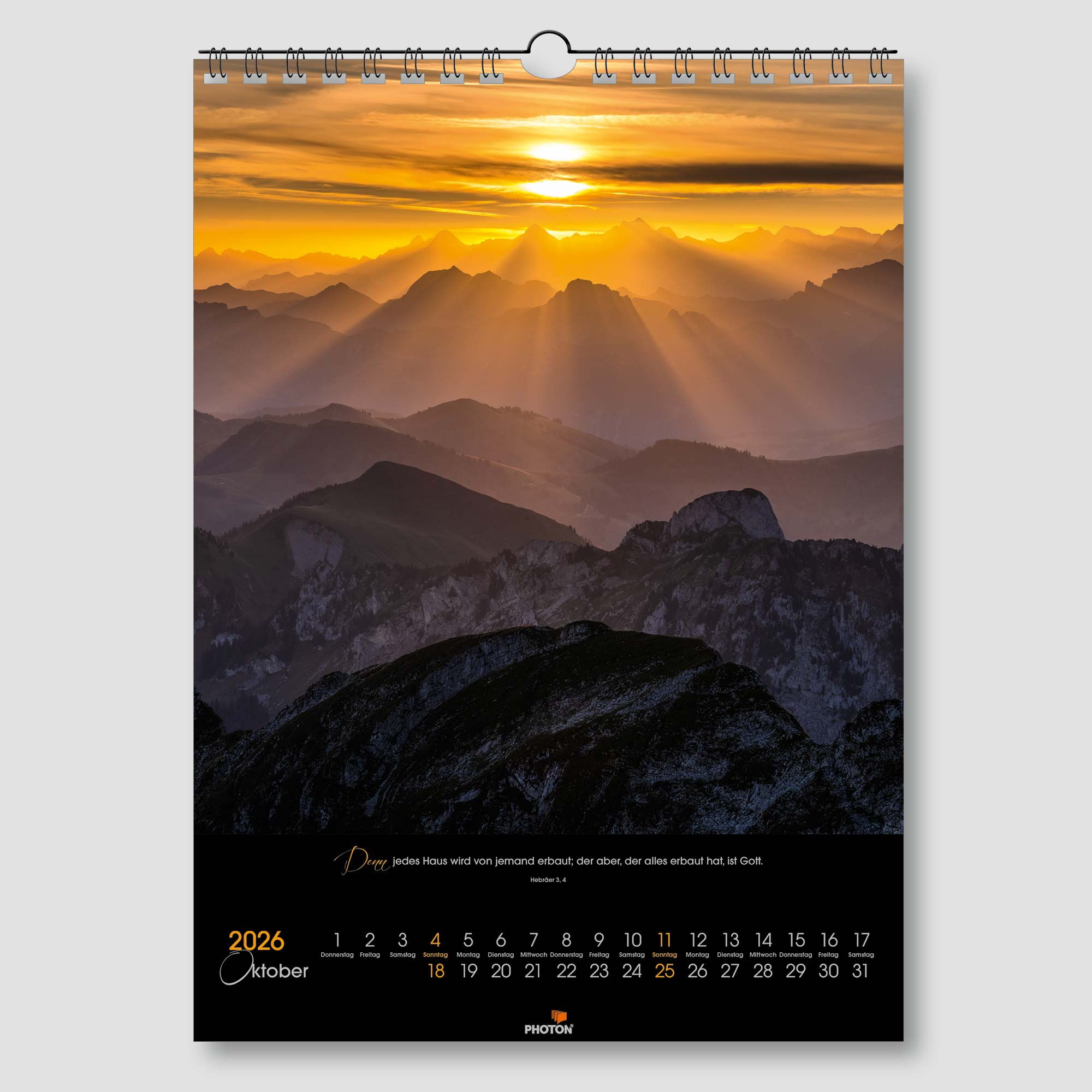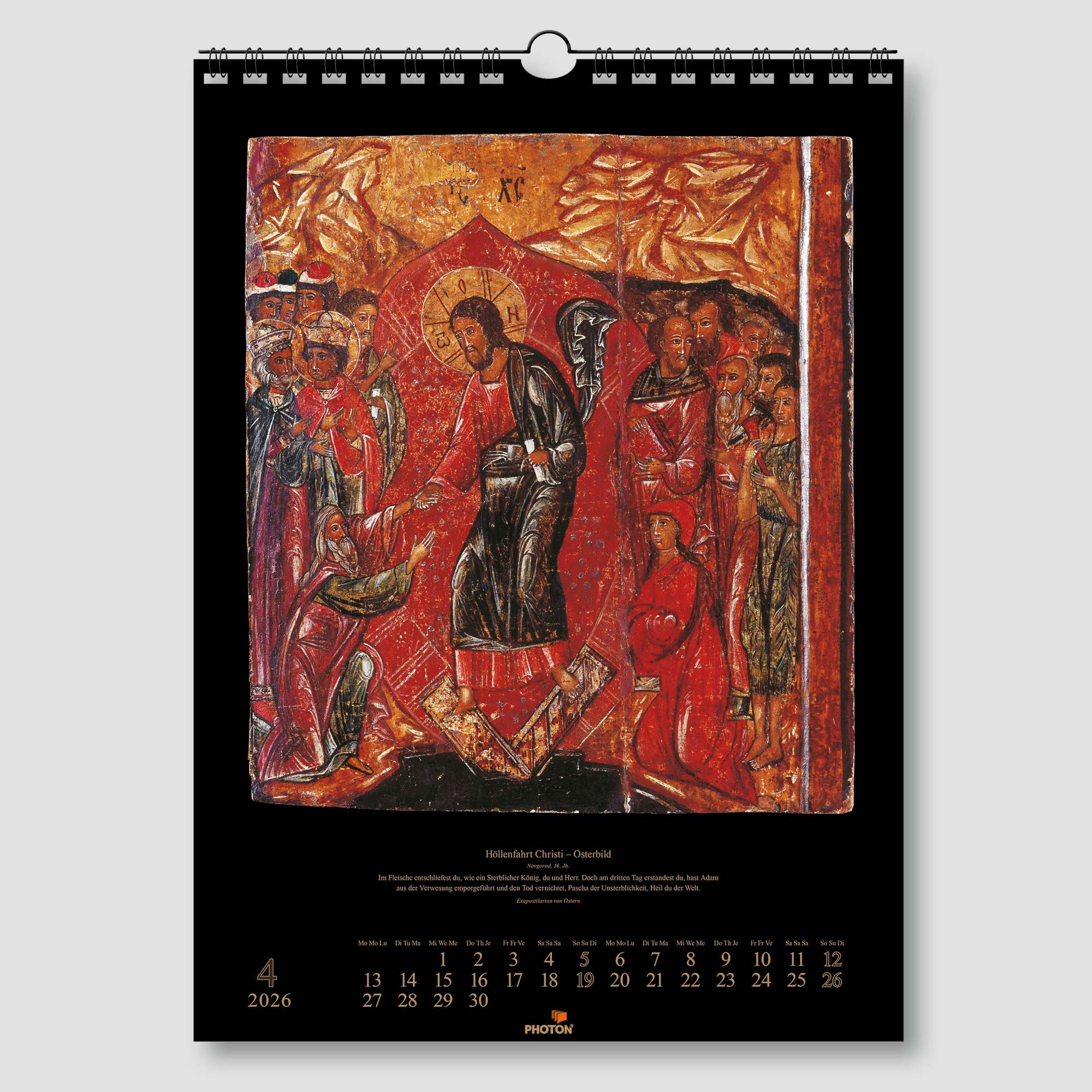 Die brillanten Monatsblätter mit Fotografien von Markus Kesenheimer entsprechen dem Festkreis des Kirchenjahres und bieten passende Texte, sowie ein Vorwort von Pater Nikolaj Dorner OSB. Höchst anspruchsvoll und geschmackvoll umgesetzt. Ein Kalenderprojekt, das längst zum Sammlerstück avanciert ist. Dieser Kalender ist besonders empfehlenswert!