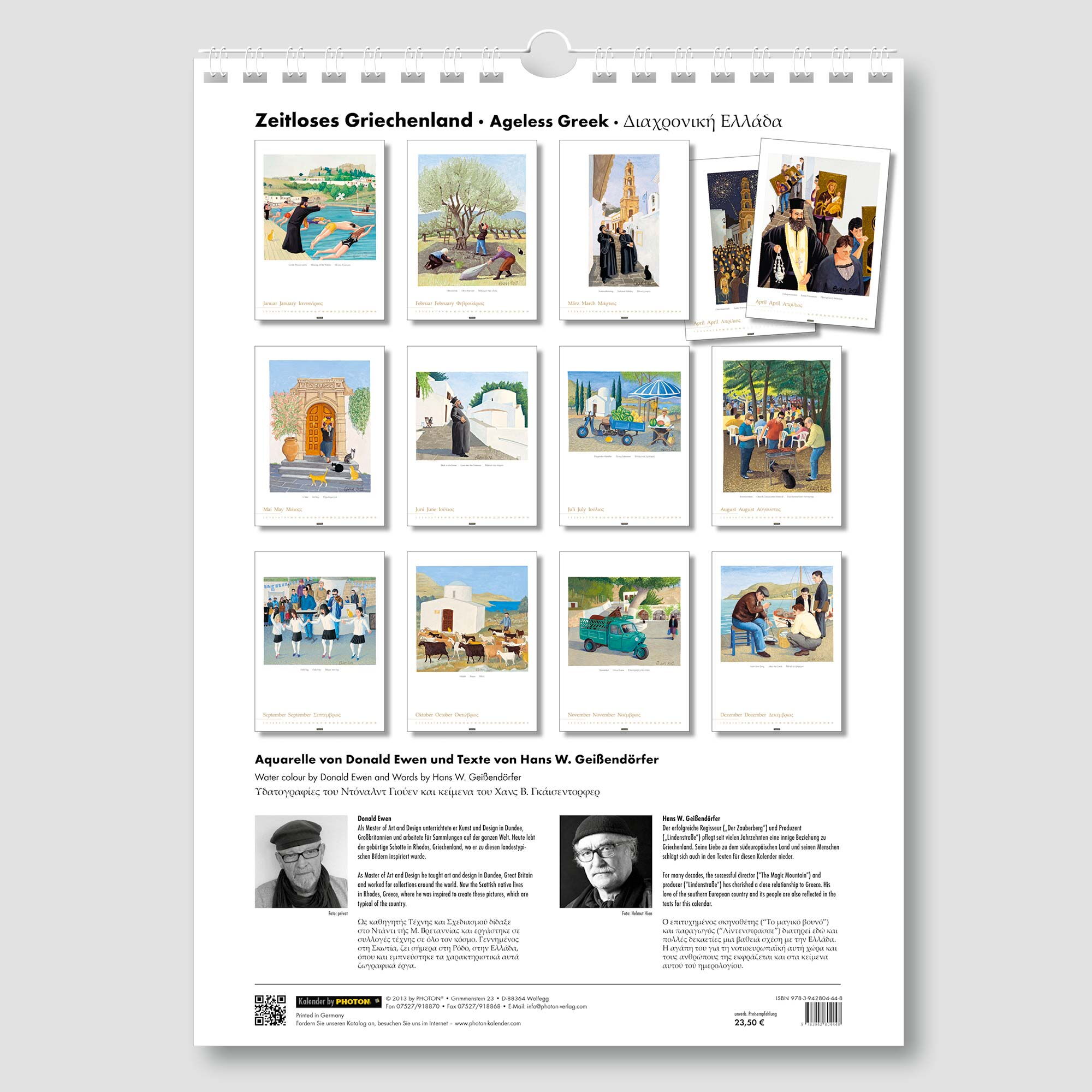 Der erfolgreiche Regisseur („Der Zauberberg“) und Produzent („Lindenstraße“) pflegt seit vielen Jahrzehnten eine innige Beziehung zu Griechenland. Seine Liebe zu dem südeuropäischen Land und seinen Menschen schlägt sich auch in den Texten für diesen Kalender nieder.