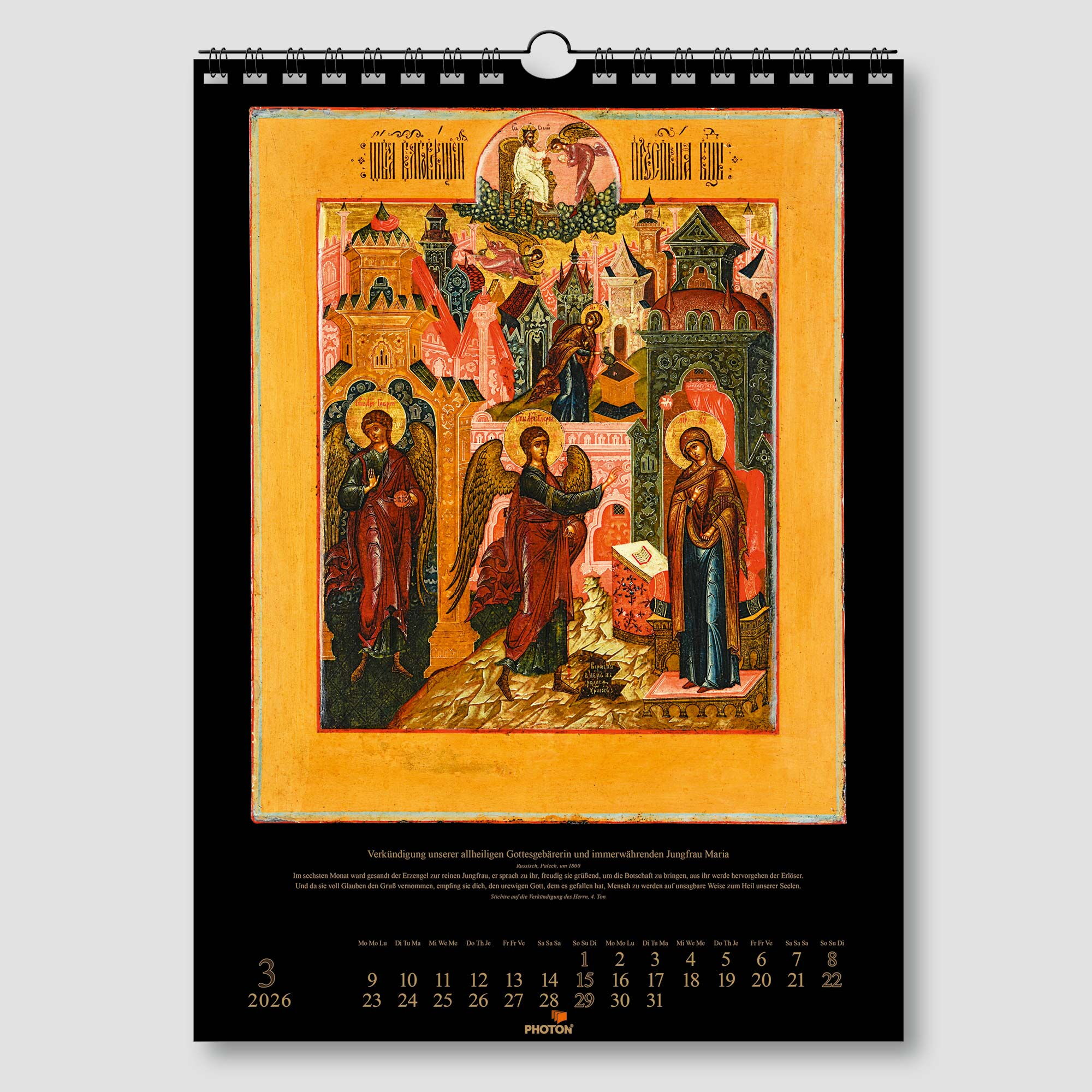 Außerordentlich schöne Ansichten wertvollster Ikonen, liebevoll zusammengetragen, begleiten den Betrachter durch das ganze Jahr.