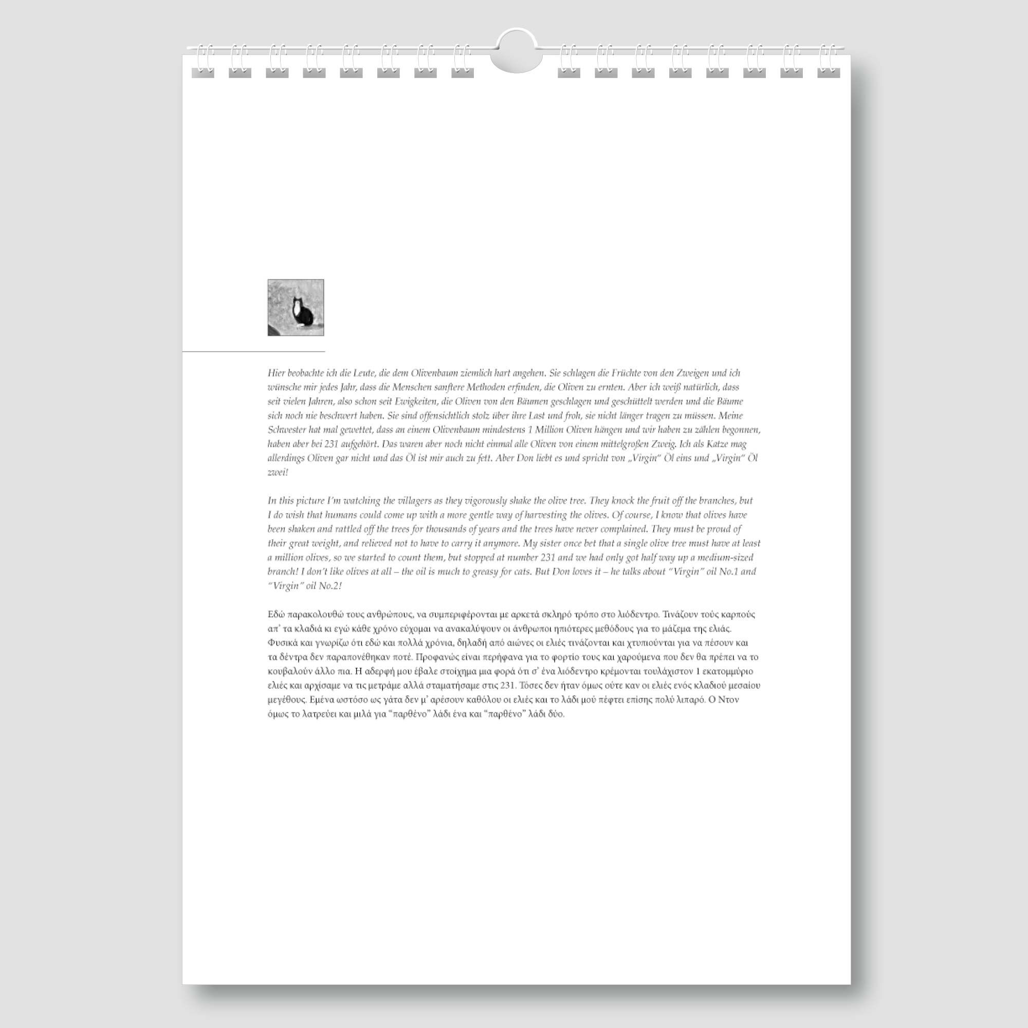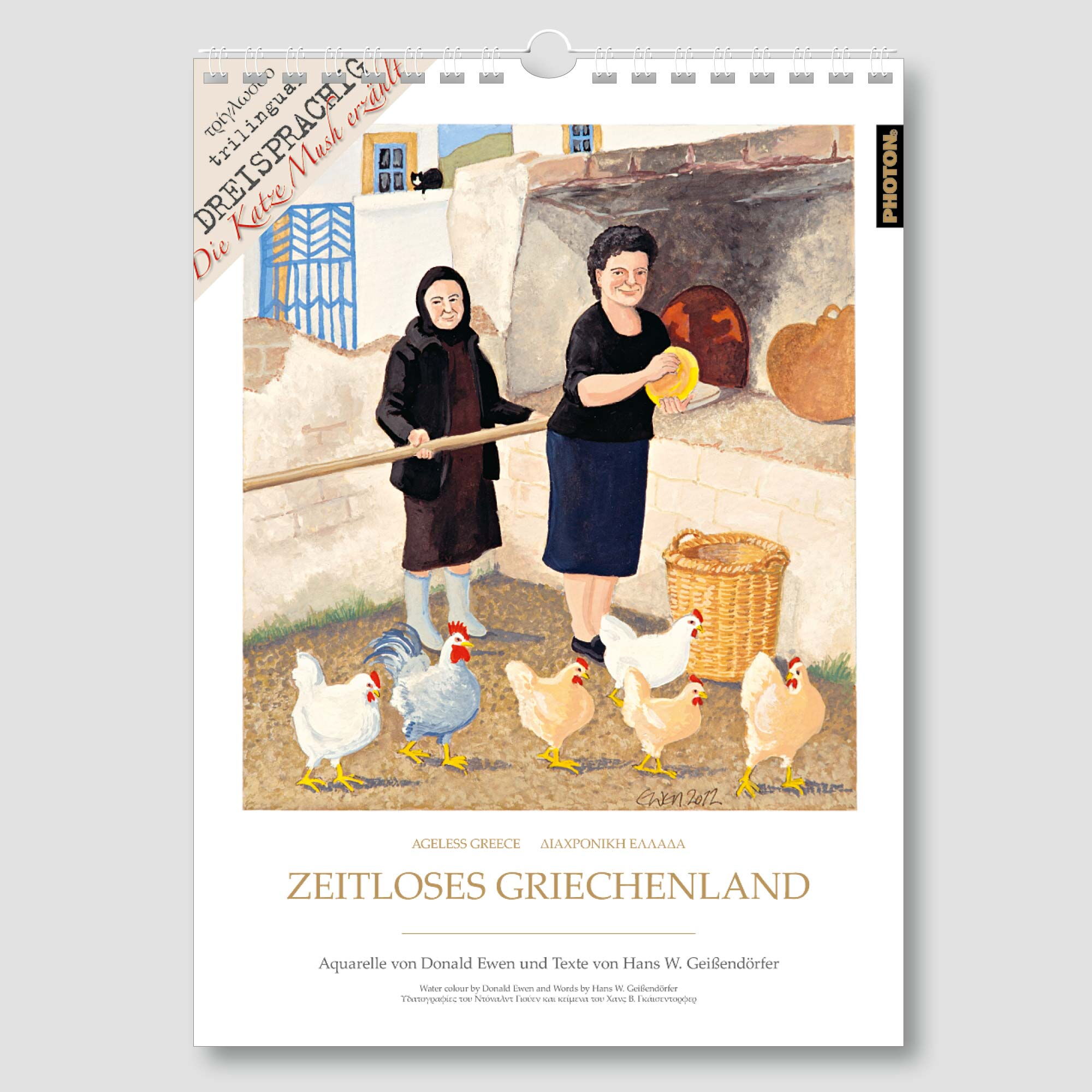 Der erfolgreiche Regisseur und Produzent Hans W. Geißendörfer schlüpft in die Rolle der Katze Mush. Mit Witz und Charme erzählt er detailgetreu die Geschichte zum jeweiligen Motiv aus Sicht einer Katze. Spannend und unterhaltsam begleitet Mush den Betrachter auf einer Reise durch das Jahr. Die farbenfrohen Aquarelle von Donald Ewen präsentieren die landestypischen Ereignisse in einer einzigartigen Weise. Ein Kunstkalender mit immerwährendem Kalendarium der Extraklasse!