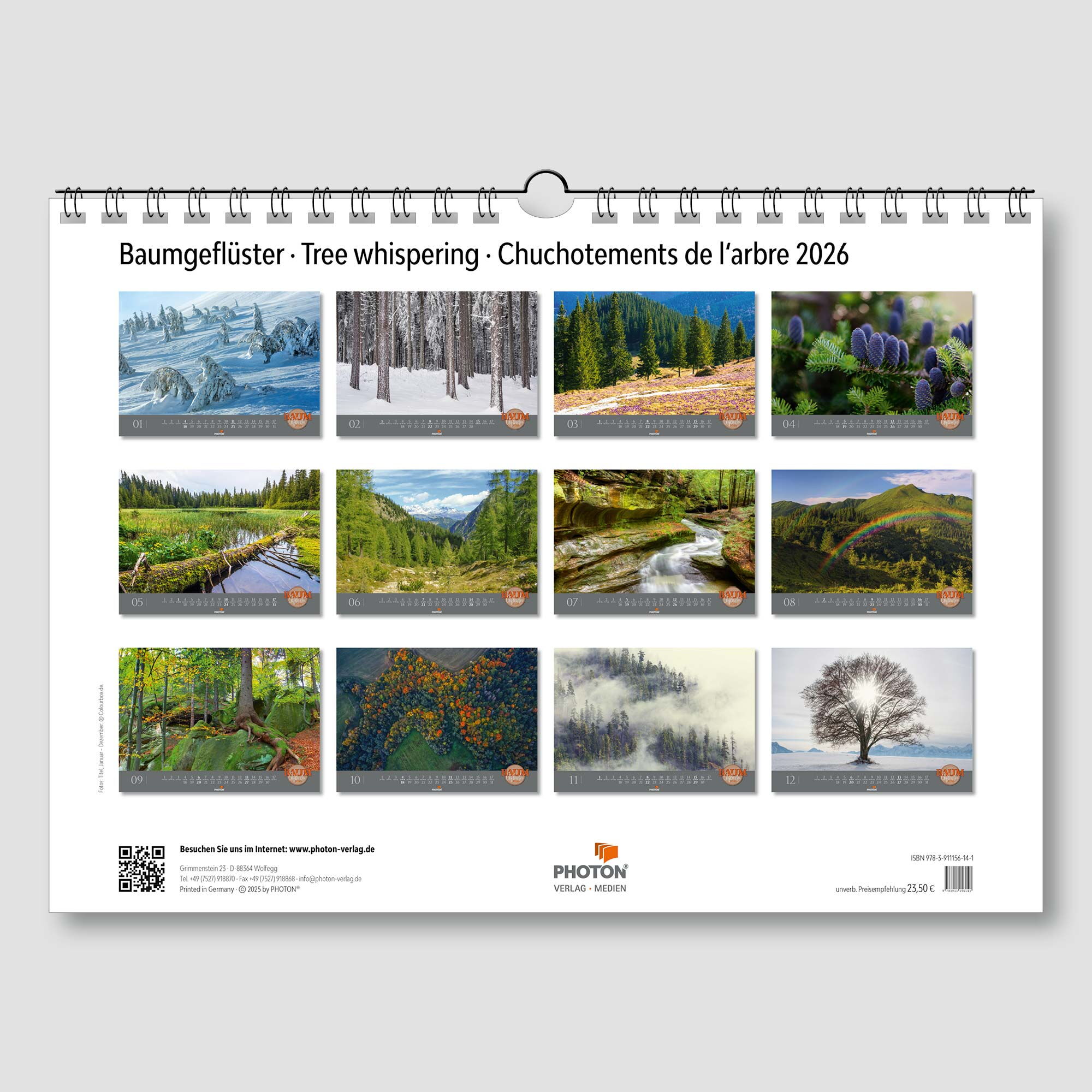 Termine, To-Do-Listen, Zeitdruck. Höchste Zeit, sich Monat für Monat ein Stück Natur zurückzuholen. Mit kraftvollen Aufnahmen feiert der Kalender die stillen Giganten der Natur. Alte Baumriesen, knorrige Äste, ungewöhnliche Formen und faszinierende Lichtspiele erzählen ihre ganz eigene Geschichte. Ob als Ruhepol im Büro oder als Stück Natur für zuhause: „Baumgeflüster“ bringt die Botschaft der Bäume genau dorthin, wo man sie am meisten braucht – mitten in den Alltag!